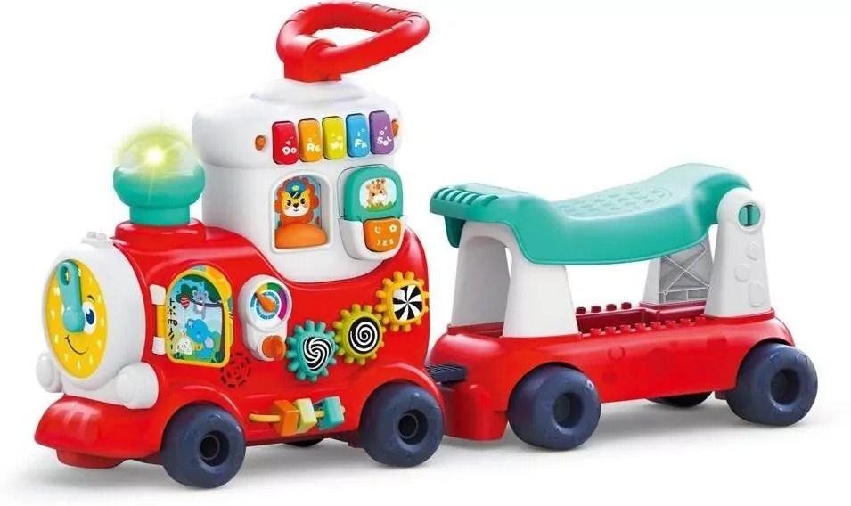 Jeździk pociąg 4w1 to nowoczesna zabawka, która oferuje dzieciom aż cztery różne sposoby na zabawę. Maluchy mogą na przykład siedzieć na wagoniku i poruszać się, odpychając nogami. Alternatywnie, istnieje możliwość odpięcia wagonika, co umożliwia dziecku chodzenie za lokomotywą. Oprócz tego dziecko może ciągnąć wagonik lub bawić się przy pociągu dzięki licznym aktywnym elementom.