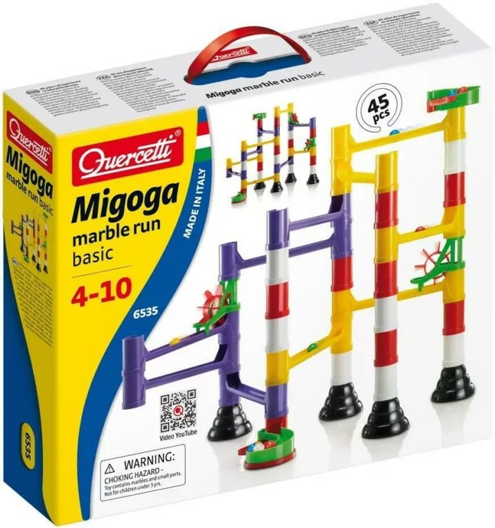 Tor kulkowy Marble Run od Quercetti to doskonały wybór dla dzieci w wieku czterech lat. Łączy on edukację z niesłabnącą dawką zabawy. W skład zestawu wchodzi 45 elastycznych i wytrzymałych elementów, które pozwalają maluchom tworzyć skomplikowane trasy dla kulek.