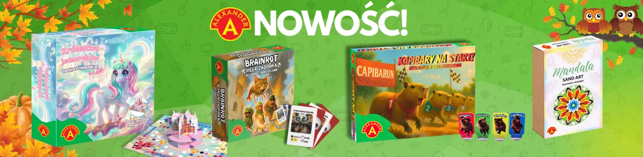 Przedsiębiorstwo Alexander prężnie się rozwija. W swoim asortymencie posiada również gry adresowane do seniorów. Są specjalnie zaprojektowane z myślą o osobach dorosłych także pod względem estetyki. Mogą stanowić świetny upominek dla babci lub dziadka.