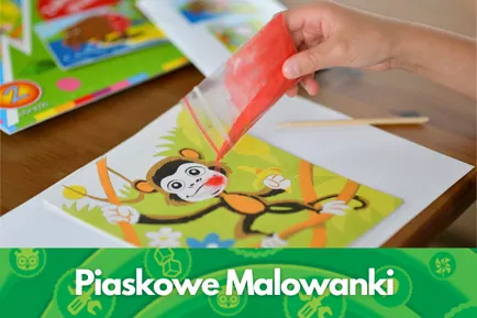 Na szczególną uwagę zasługują również piaskowe malowanki - uwielbiane przez najmłodszych. Nawet temu, kto nie posiada artystycznych zdolności udaje się stworzyć piękne obrazy, co sprawia, że dziecko umacnia wiarę w siebie. Proponowana tu aktywność ma również niezwykły wpływ na prawidłowy rozwój integracji sensorycznej.